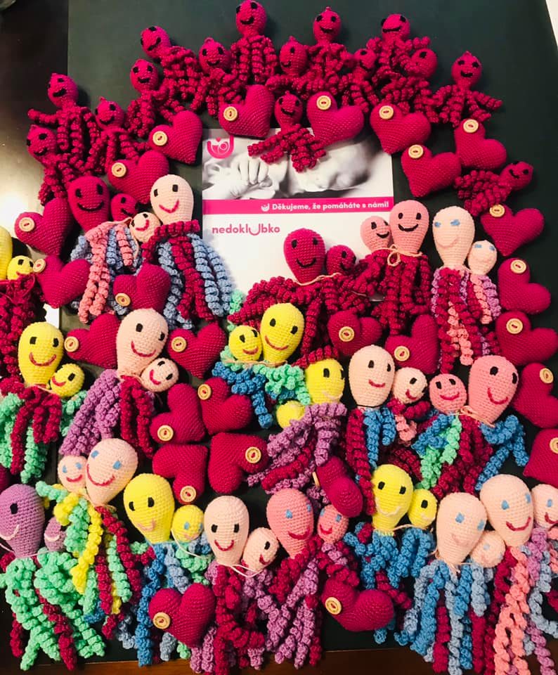 V srpnu 2024 tu vznikla parta s názvem Háčkulinky. Zhruba dvacítka žen, každá úplně jiná, ale se stejným cílem: háčkovat dárky, které přes Nedoklubko putují na neonatologická oddělení. Za necelý rok odeslaly 330 chobotniček. Třista třicet. To je skoro flotila. A mezitím si vybudovaly nová přátelství a ten krásný pocit, že dělají něco, co má fakt smysl.