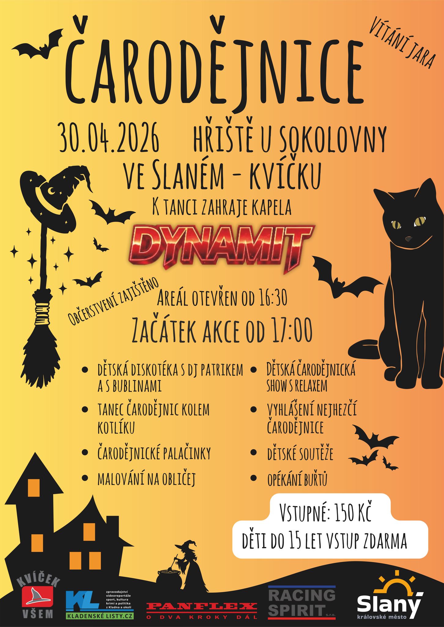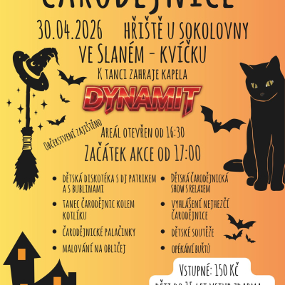 Ve Slaném se čarodějnice chystají například v Kvíčku, kde se hřiště u Sokolovny promění v místo plné kouzel, ohně a jarní atmosféry. Pozvánka města láká na čarodějnice ve Slaném–Kvíčku právě 30. dubna. Tedy ideální volba pro ty, kdo chtějí zůstat přímo ve Slaném a přitom si užít klasický čarodějnický večer bez dlouhého přesunu.