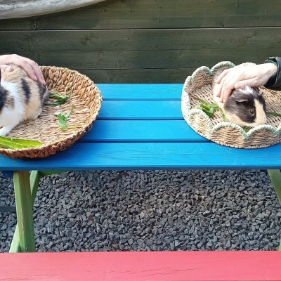 Zvířátka se tu střídají podle ročního období, takže každá návštěva je trochu jiná. Teď na jaře tu potkáte slepičky a kuřátka, králíky, morčata a jemnou jarní atmosféru, která člověka obejme hned u branky.