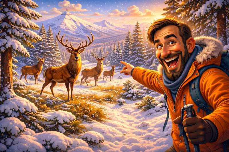 Konečně jsem se dostal z baráku. Odstranil jsem to bílý svinstvo a vydal se do obchodu pro nějaké jídlo. Při zpáteční cestě mi vběhl do cesty jelen a už se to nedalo ubrzdit. Mám škodu na autě za 50 tisíc. Ty idiotský bestie by měli postřílet. Nevím, proč je ti lovci nevymlátili během sezóny všechny.