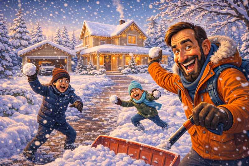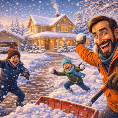 Minulou noc krásně sněžilo. Probudil jsem se a vše bylo pod jiskřivou sněžnou pokrývkou. Krása jak na vánočním pohledu. Proházel jsem příjezdovou cestu, cestičky okolo domku a uspořádali jsme rodinnou koulovačku. Potom projel sněžný pluh a musel jsem znovu proházet příjezdovou cestu. Prostě to tady miluji.