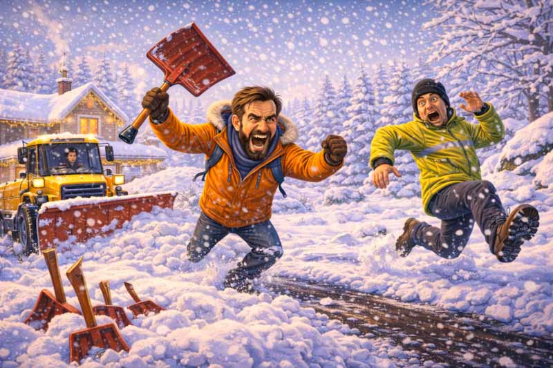 Včera napadlo ještě víc těch bílejch s*aček. Mám na rukou puchýře od lopaty. Jsem přesvědčený, že sněžnej pluh čeká někde za rohem, dokud neproházím cestu. Hajzl jeden.