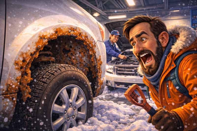 Odvezl jsem auto do servisu ve městě. Člověk by nevěřil, jak může za jednu zimu zrezivět od ty debilní soli, co s tím ty hovada sypou tu silnici.
