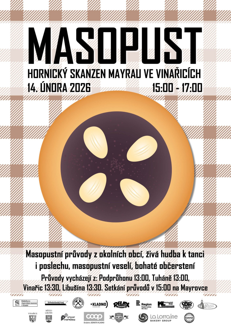 Masopust na Mayrovce má jednu výhodu, kterou spousta jiných akcí postrádá: nesnaží se tvářit moderně. Nestojí na tom, že „něco sdílíte“, ale na tom, že tam skutečně jste. V sobotu 14. února 2026 se hornický skanzen Mayrau ve Vinařicích znovu promění v místo, kde má masopust smysl, hluk i pach koblih.