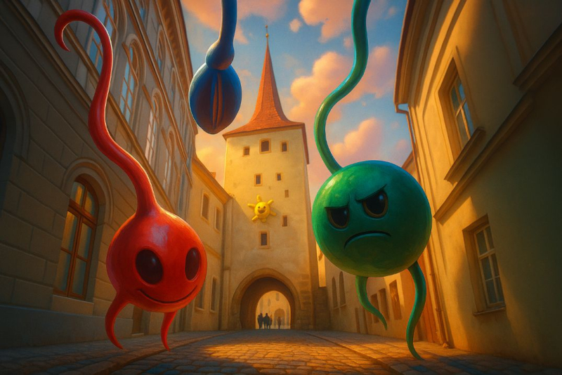 Trpákovy tvory a tvary si člověk buď zamiloval, nebo se jich trochu lekl. Tak to má být. Umění, které se nikomu neplete do života, většinou nestojí za řeč. Mikrosvěty vyrostly mezi kašnou, fasádami a spěchem běžného dne, jako by připomínaly, že i polyester a ocel může mít fantazii.