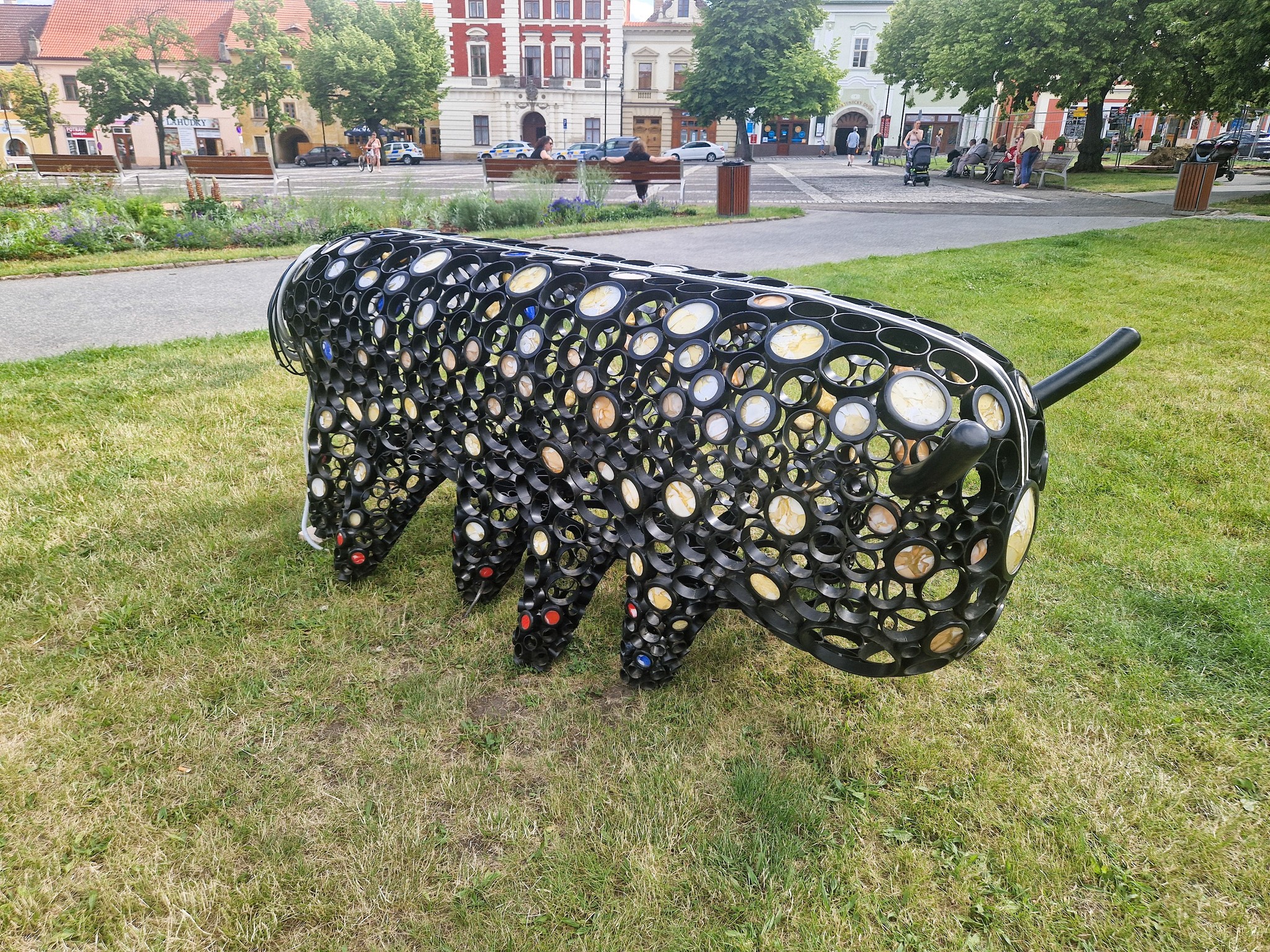 Trpákovy tvory a tvary si člověk buď zamiloval, nebo se jich trochu lekl. Tak to má být. Umění, které se nikomu neplete do života, většinou nestojí za řeč. Mikrosvěty vyrostly mezi kašnou, fasádami a spěchem běžného dne, jako by připomínaly, že i polyester a ocel může mít fantazii.