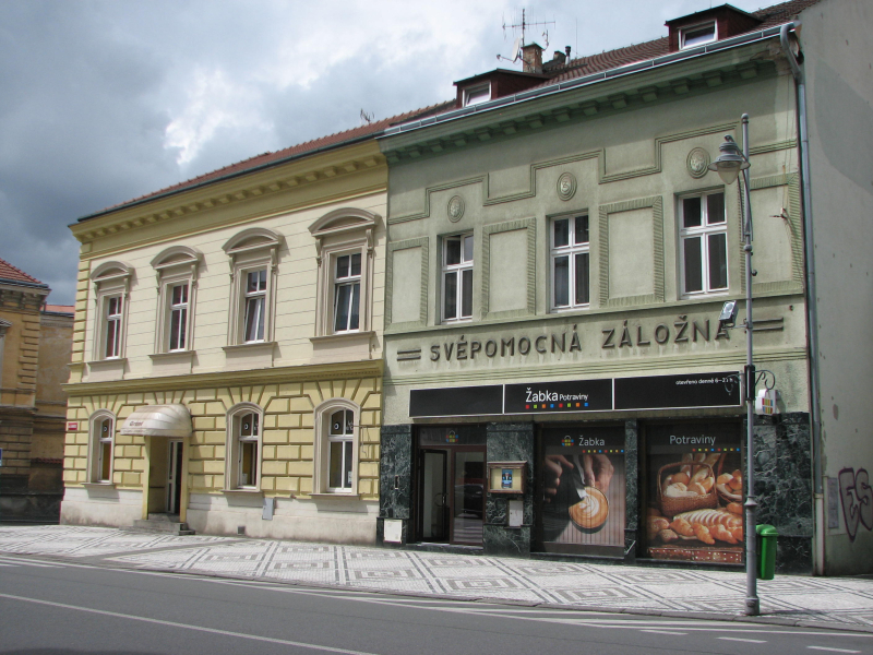 Obr.: Budova původní Svépomocné záložny, která byla přepadena. Fotografie od Jiřího Popoviče. Nynější potraviny Žabka.