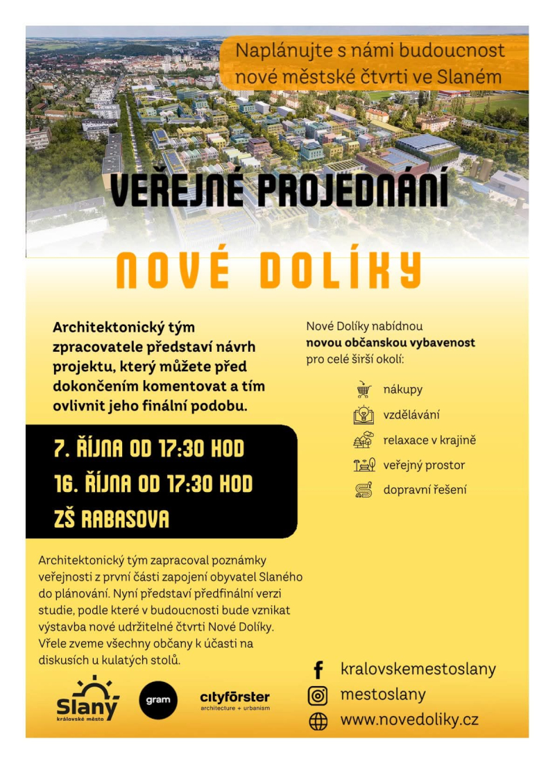 Slaný se opět chystá trochu probrat a rozhodlo se, že tentokrát do toho zapojí i vlastní občany. Žádné tajné plány, žádné kreslení čar na mapě někde v kanceláři. Město zve všechny, kdo mají chuť ovlivnit, co vyroste na jihu města. Nové Dolíky se totiž rodí – a prý to nebude jen pár domků, ale pořádná čtvrť.