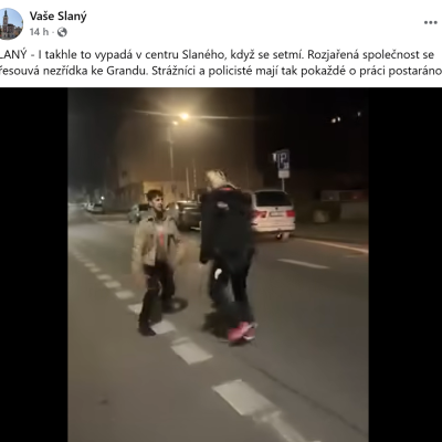 Nejdřív video z centra. Skupinka rozjařených nočních hrdinů před Shisha barem v Grandu předvedla, že chodník je jen zbytečný vynález a veřejná komunikace je mnohem vhodnější prostor pro zkoušku koordinace pohybů a argumentačních schopností. Policie měla o program postaráno, takže rozhodně nehrozilo, že by se někdo nudil.