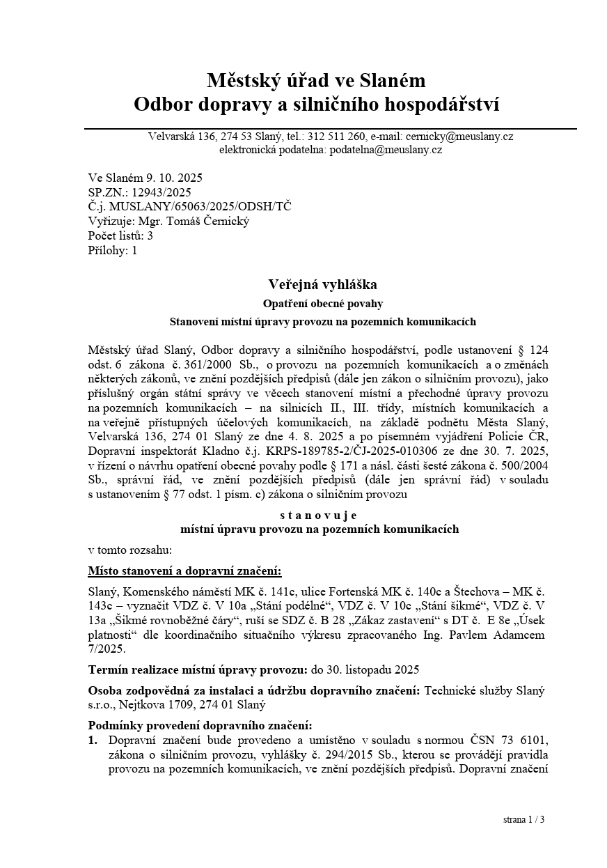 Opatření vstoupí v platnost patnáctým dnem po vyvěšení, tedy klasicky v době, kdy si toho všimne přesně jeden člověk – ten, co hledá, proč mu policie odtáhla auto.